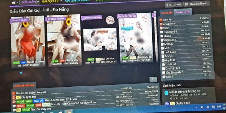 Giao diện của một diễn đàn gái gọi Huế (Ảnh chụp màn hình máy tính).