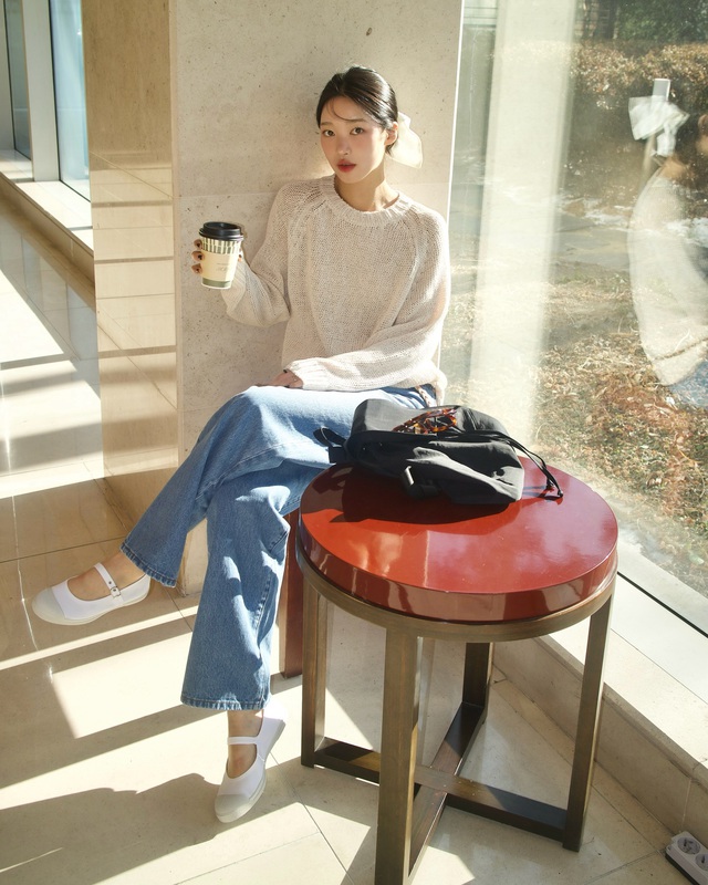 Vào những ngày chỉ muốn ăn diện đơn giản, combo áo len trắng và quần jeans xanh là một sự kết hợp hoàn hảo. Dù rất quen thuộc, áo len trắng và quần jeans xanh không bao giờ mang lại cảm giác nhàm chán. Muốn tạo điểm nhấn hút mắt cho tổng thể, kiểu tóc buộc tô điểm phụ kiện và đôi giày mary jane là những lựa chọn tuyệt vời vì giúp người diện thêm ngọt ngào.